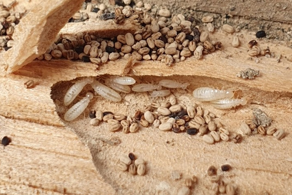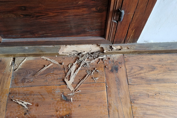 흰개미에 의한 피해 확인은 봄철에 발생하는 결혼 비행으로 파악 되는 데 목조 건축물 내부에서 흰개미 성충이 육안으로 발견되면 이미 건축물 상당수가 심각하게 피해가 진행된 상태이고,