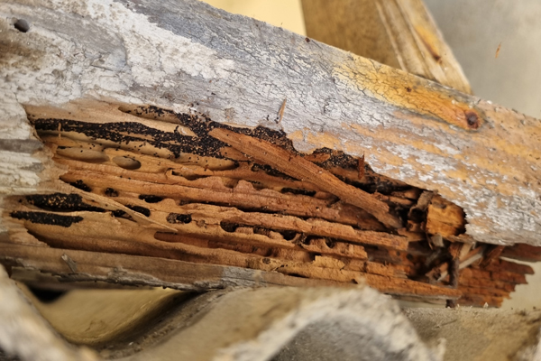 목재 내부를 먹어 치우는 특징이 있고, 초기에는 피해 발견과 방제가 매우 어렵습니다.