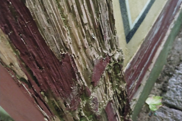 흰개미는 페인트와 벽 사이에 습기를 넣어 페인트가 벗겨집니다.