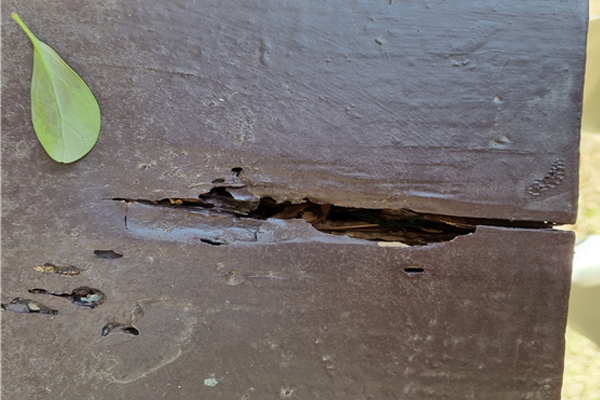나무를 두드렸을 때 속이 빈 소리가 난다면 흰개미가 집 안을 갉아 먹었을 수도 있습니다.