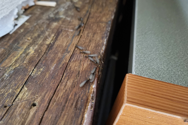 흰개미가 번식기 결혼비행 후 창밖주변에 흰개미 생식충이 끊고 버린 날개 흔적으로 유입을 알 수 있습니다.